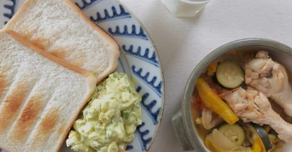 トーストとアボカドディップと鶏肉のラタトューユの朝ごはん レシピあり もじゃ 器好きな男子の日常 Note