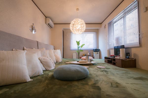 祝予約100件突破 芝生でパーティ 四ツ橋駅徒歩4分 キッチン付き 女子会 誕生日会 ママ会 タコパや鍋パに スペースマーケット 模様替え インテリア 家具 エアビーアンドビー
