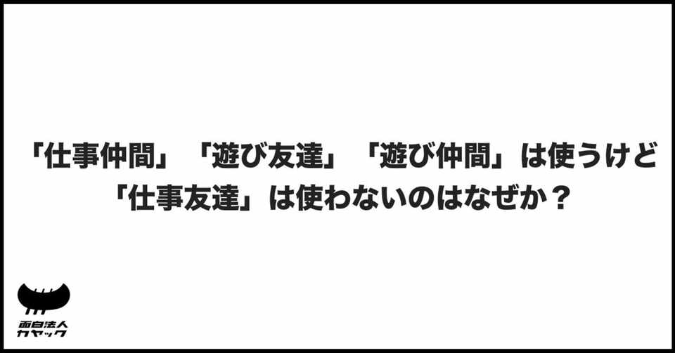 仕事仲間 遊び友達 遊び仲間 は使うけど 仕事友達 は使わないのはなぜか 面白法人カヤック 人事部 Note