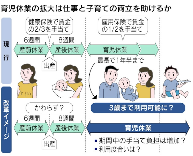 働く女性に手厚い支援 首相 育児休業3年 表明 日本経済新聞